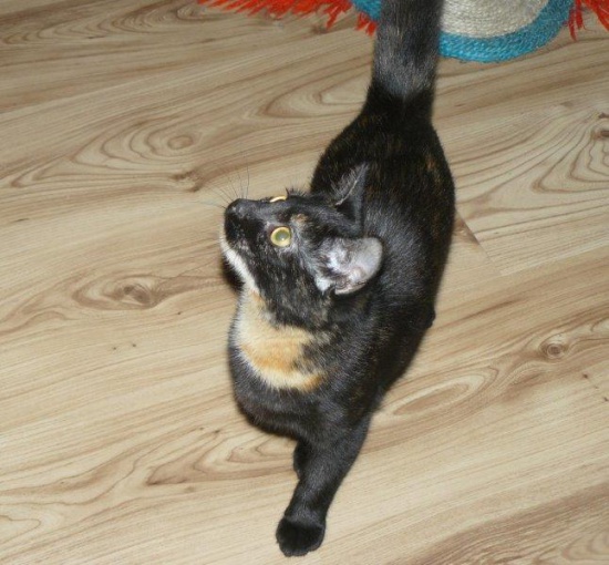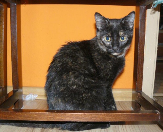 Szylkretowa Łasiczka - szelesty w starym letniskowym domu na poddaszu. Łasica? Jak się tam dostała malutka domowa kotka? Jak przetrwała bez wody i jedzenia? Pewnie ktoś porzucił wakacyjną zabawkę.. Towarzyska, proludzka, przemiła i grzeczna. Przychodzi na wołanie, stara się być blisko człowieka - zagaduje i pięknie mruczy. Smukła i zręczna - prawdziwa łasiczka. Urodziła się w końcu maja 2014, jest odrobaczona, zaszczepiona i wysterylizowana, ma książeczki zdrowia.