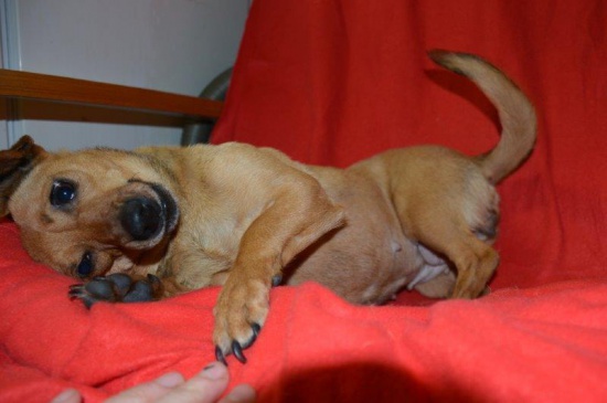 Tao - malutka, ważąca ok.5kg przemiła i mądra sunia. Porzucona w lesie początkowo bała się ludzi, ale regularnie karmiona zaufała całym psim serduszkiem. Jest grzeczna, delikatna, szybko i chętnie się uczy. Na pewno dobrze czułaby się w ciepłym rodzinnym domu z dziećmi i dużą ilością rąk do głaskania - jest przesympatycznym pieszczoszkiem. Ma około 3latek, jest wysterylizowana i zaszczepiona, ma książeczkę zdrowia.