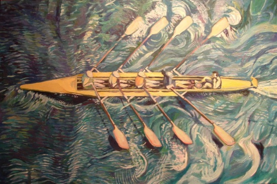 Proponuje wykonanie portretów według zdjęć (również czarno-białych) - na specjalne życzenie według uznania przerabiam je malując na sepie lub wersje kolorową. Wykonuje portrety zbiorowe, pejzaże, motywy dekoracyjne, motywy fauny i flory, abstrakcje, prace z wyobraźni. Przykładowy obraz z kajakarzami poniżej został wykonany według czarno-białego zdjęcia.