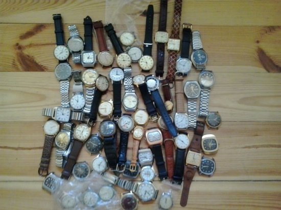 Sprzedam kolekcje około 50 zegarkow mechanicznych z lat 50-90 wiekszosc grubo pozlacanych mechaniczne w tym np. Orienty o naciagu automatycznym. Rakety , Poljoty, Wostoki ,Pobiedy, ZiMy , itp itd . Praktycznie wszystkie zegarki sa meskie .Jest to likwidacja mojej kilkuletniej kolekcji.Zegarki sa sprawne i zadbane w b.dobrych stanach. Na zdjeciu jest pokazana czesc kolekcji. Cena 1500 zł