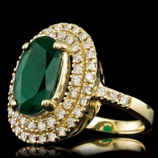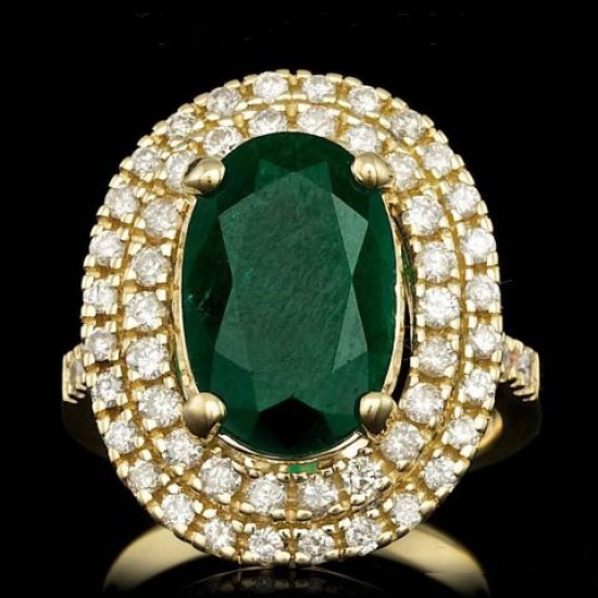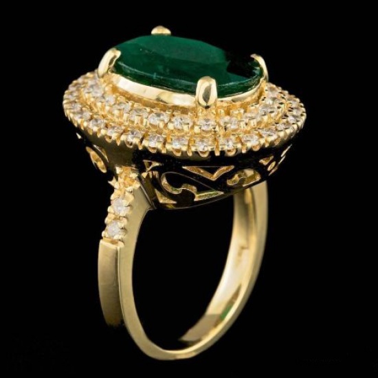 Zloty pierścionek z diamentami i szmaragdem
