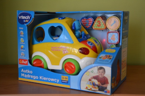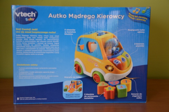 ~~Autko mądrego kierowcy firmy Vtech uczy zasad bezpiecznej jazdy oraz rozwija wiele umiejętności dziecka.Włóż klocek pasujący do odpowiedniego kształtu w samochodziku, aby usłyszeć wesołe dżwięki, słowa, nazwy kształtów i nauczyć się liczenia. Zagraj własną melodie na pianinku.Światła reflektorów samochodu świecą, a kierowca szczeniaczek kręci się na boki wraz z poruszaniem się pojazdu.Wymiary opakowania 29cm/18cm/22cmWesoła piosenka opowie o zasadach bezpiecznego przechodzenia przez jezdnię. Załaduj klocki do otwieranego bagażnika i ruszaj w podróż ciągnąc autko za sznurek.Zabawka ta wspomaga rozwój językowy,sensoryczny,motoryczny oraz zachęca do samodzielnej zabawy.