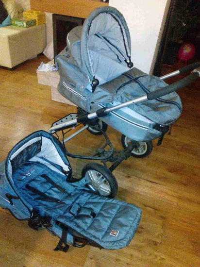 - Nosidełko, które pełni jednocześnie rolę fotelika samochodowego,