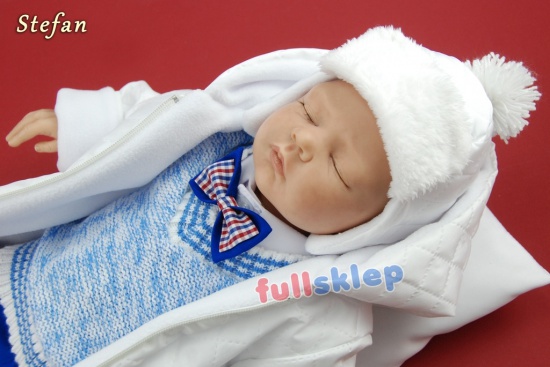 2 - Z nausznikami czapeczka koloru białego. Podszycie czapeczki zostało wykonane na ciepły polarze. Czapeczkę dopasowujemy do główki dziecka przy pomocy przyszytych do nauszników troczków ze stoperem. Z tyłu doszyta gumka ułatwiająca odpowiednie dopasowanie się czapki do główki niemowlaka. Czapeczka odpowiednia zarówno na trzy pory roku: jesień, zimę jak również na chłodną wiosnę.