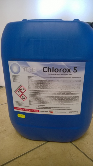 Chlorox S- Stabilizowany roztwór podchlorynu sodu. Chlorowy środek bakteriobójczy i grzybobójczy stosowany w basenach kąpielowych. Produkt o 9 miesięcznym okresie ważności. Posiada atest PZH oraz Pozwolenie Ministerstwa Zdrowia. Płyn do dezynfekcji wody basenowej oraz pitnej i powierzchni mających kontakt z żywnością oraz środkami żywienia zwierząt.