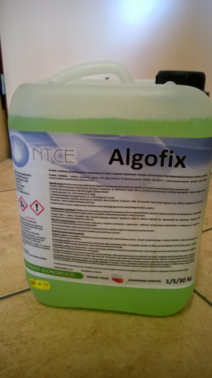Antyglon Algofix- Płynny, wysoko wartościowy, niepieniący się preparat do dezynfekcji wody basenowej przeciw glonom, zawierający 24% amin czwartorzędowych. Zapobiega zielenieniu wody oraz pojawianiu się śliskich osadów. W wodzie basenu wspomaga powszechnie stosowane produkty chlorowe i tlenowe. Odporny na temperatury i światło słoneczne. Posiada obojętne pH. Poprawia klarowność wody. Nie zawiera chloru i ciężkich metali. Przeznaczony również do basenów z urządzeniami masażu wodnego. Stosowany na basenach komunalnych, prywatnych, ogrodowych, dziecięcych, fontannach i niezarybionych oczkach wodnych.