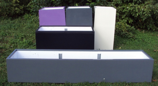 Donice z laminatu które proponujemy są wykonane metodą ręczną z żywicy poliestrowej i maty szklanej. Zewnętrzna powłoka pokryta jest żelkotem izoftalowym odpornym na warunki atmosferyczne. Każde zamówienie jest indywidualnie dostosowywane do potrzeb klienta. Posiadamy szeroką paletę kształtów jak i rozmiarów a kolor można wybrać z palety kolorów RAL. Donice nasze idealnie pasują do ogrodu jak i do recepcji, holi również jako element dekoracyjny. Wszystkie donice kwadratowe i prostokątne są wyłożone styropianem o grubości 3 cm a donice o dużych rozmiarach dodatkowo wzmacniane na ścianach bocznych.