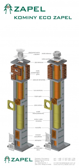 Kominy ceramiczne ZAPEL. 8 metrów z 1 wentylacją. Średnica rury 200mm, kwasoodporne, odporne na pożar sadzy i temp 600 st. Izolowane wełną na całej długości.