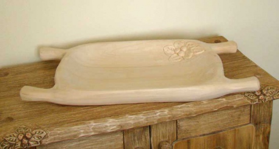 Koryto z litego drewna do podawania potraw. Nasze korytka wykonywane są w całości ręcznie, posiadają ornamenty roślinne. Od dziś Twoje dania będą nie tylko smaczne, ale również niebanalnie podane!