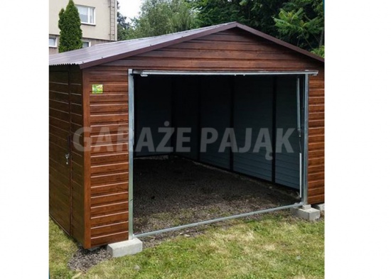 Ogłoszenie dotyczy garażu blaszanego z blachy drewnopodobnej o wymiarach 4x6m wykonanego z profili zamkniętych