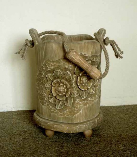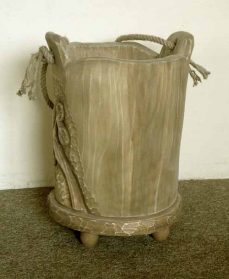 Polecam śliczny kwietnik - wiadro, wykonane z pnia. Kwietnik w całości wykonany ręcznie, zdobiony rzeźbionym motywem stylizowanych słoneczników, bejcowany i woskowany. Z pewnością będzie uroczym akcentem każdego wnętrza.
