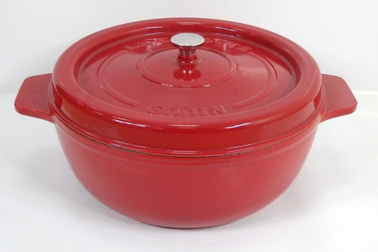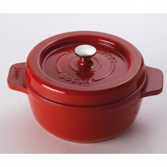Oferujemy garnki żeliwne emaliowane okrągłe w kolorze czerwonym (wnętrze piaskowe), Dostępne w następujących rozmiach;