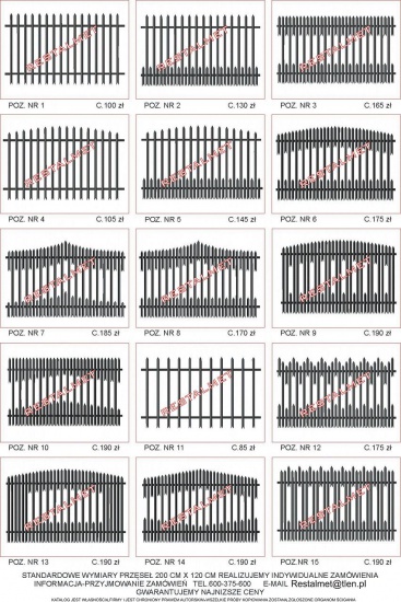 Przęsła z kątownika zimnogiętego 25/25/2, rygle 30/20/2. Każdy wzor i wymiar od ręki. Ponad 60 wzorów. Segmenty sa gruntowane i malowane dwukrotnie zanurzeniowo na czarno. Do danego wzoru bramy dwuskrzydłowe i przesuwne, furtki, słupki. Zapewniamy: doradztwo, pomiar u kupującego, transport, montaż . Niedoscigniona jakość, długoletnie doświadczenie, budowa ogrodzeń od podstaw, realizacja własnych projektów, negocjujemy ceny, szybka realizacja.