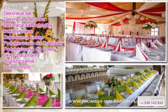 Dekoracje weselne sali, auta, kościoła oferuje wraz z innymi usługami ślubnymi Sklep Promesa w Wałbrzychu