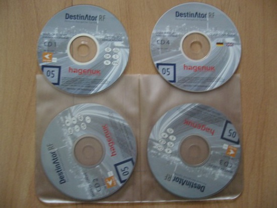 Cztery płyty nowe z kodem licencyjnym, nie używane, nie rejestrowane do nawigacji gps Destinatoe RF, na płytach państwa: D, EU ROADS, DK, S, N, FIN, NL, B, L, F, GB, IRL, I, A, CH, PL, CZ, E, P, FL. Zestaw map bez opakowania kartonowego, które uległo uszkodzeniu, tylko w opakowaniu foliowym koszulkowym.