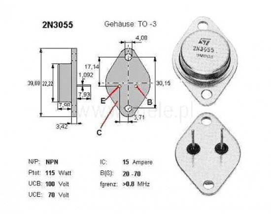 Tranzystor mocy 2N3055 - NPN 15A-TO3