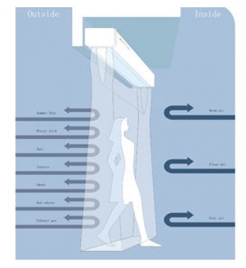 Kurtyny przystosowane do montażu poziomego. Można montować klka kurtyn obok siebie. Kurtyna zaczerpuje powietrze z wewnątrz pomieszczenia, powietrze jest podgrzewane przez grzałki elektryczne i wydmuchiwane z dużą prędkością. Kurtyny mogą być również stosowane bez podgrzewania powietrza przez grzałki elektryczne jako tzw. kurtyny "zimne".