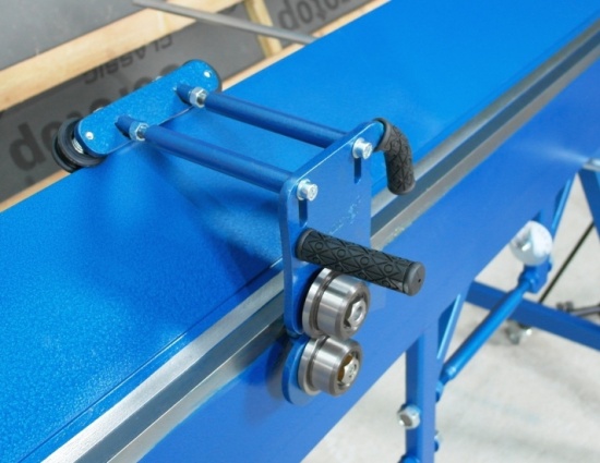 - z przodu ograniczniki cięcia pozwalające na seryjne odcinanie blach o tej samej szerokości