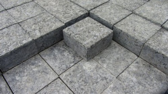 Oferujemy kostkę granitową cięto-plomieniowaną, kolor - grafit. (posiada antypoślizgowe pokrycie).