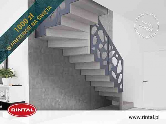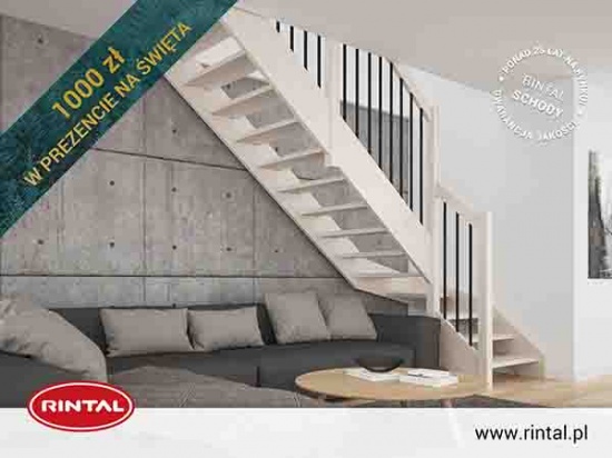 Rintal Polska, wiodący producent schodów do wnętrz organizuje promocję: 1000 zł w prezencie na Święta na zakup schodów wraz z poręczą i montażem. Skorzystaj z bezpłatnego pomiaru, projektu oraz otrzymaj wizualizację schodów w swoim wnętrzu gratis!