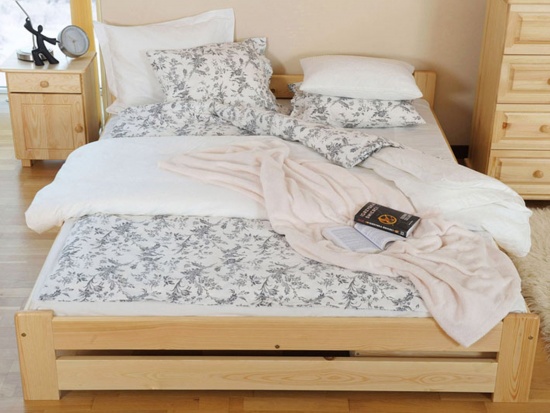 Dwuosobowe łóżko o wymiarach 160x200 wykonane z naturalnego drewna sosnowego. Prosto od producenta! Wytrzymała, stabilna konstrukcja.