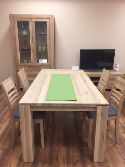 Wyjątkowy stół kuchenny Oslo z ekspozycji kupisz teraz aż 10 % taniej. Stół produkowany jest z naturalnego drewna dębowego, dzięki czemu będzie udanym zakupem zakupem na kilkanaście lat. Stół posiada również możliwość szybkiego domontowania wstawek przedłużających, dzięki którym w prosty sposób zyskasz dodatkowe miejsce, np dla gości.