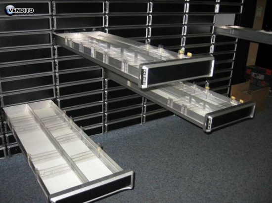 Sprzedam używane meble apteczne system głębokiego składowania w bardzo dobrym stanie. Zestaw zawiera w około 19 szuflad, szuflada wyposażona jest w przegrody i boczne opisy. Wykonujemy również nowe meble (regały, gabloty, stoły ekspedycyjne, szuflady głębokiego składowania) do aptek. Podana cena 1950 zł. netto dotyczy jednego pionu. Dostawa mebli pod wskazany adres >>>gratis<< 601/777-999 ; 602/777-999 ; 052/320-77-55 (skorzystaj z formularza)