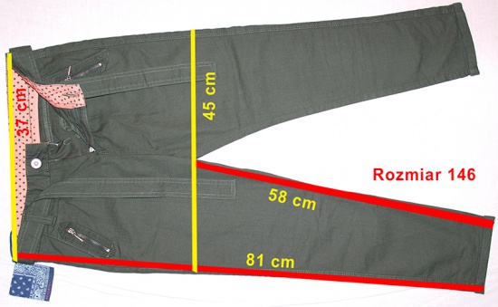 Zapraszam do zakupu spodni dziewczęcych dla nastolatki marki Reserved Girls' Trousers. Rozmiar spodni to 146. Wymiary podane na jednym ze zdjęć. Spodnie w kolorze zieleni / khaki. Troszkę jakby wojskowe. Zapinane na metalowy guzik oraz suwak (zamek błyskawiczny). Kieszenie znajdują się wyłącznie z przodu. Na kieszeniach imitacja mniejszych kieszeni z wszytymi suwakami, które ciekawie się komponują na spodniach. Sprawiają wrażenie jakby pod nimi były mniejsze kieszenie. Z tyły tylko imitacja kieszeni w formie naszywki. Spodnie posiadają szlufki do paska. W zestawie oryginalny pasek wiązany. Wykonany z tego samego materiału co spodnie. Nogawki u dołu podwinięte. Materiał przyjemny w dotyku. Spodnie idealne na wiosnę, jesień, lub chłodniejsze dni latem. Spodnie są nowe. Posiadają jeszcze metkę ze sklepu.
