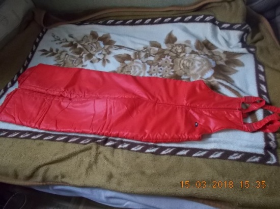 Spodnie na metce rozm 36 ale naprawde są większe mają małą plamke na wysokości piersi . Pas - 40 cm x 2 .