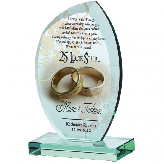 Osobisty charakter prezentu na Rocznicę Małżeństwa dzięki Twojej niebanalnej dedykacji na tle zdjęcia osób obchodzących swój jubileusz.