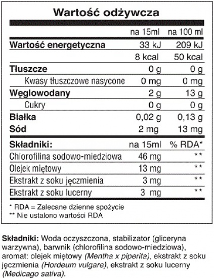 1 łyżka stołowa chlorofilu (energii światła słonecznego) = spożyciu 1 kg warzyw