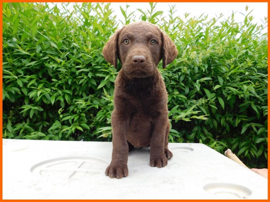 Puppies in dark chocolate color.(Korina Chessy z Vl.luk/Zeppo Angels of Baranya). Both parents are successful on shows, working led, 100% easygoing nature. Both have medical examinations and optional genetic tests. Mother´s father was the most successful Chesapeake in our country (International Champion of beauty and work), import from USA. Father of puppies is an import from Croatia (his father is import from USA). Puppies can be picked up in mid-June. At this time, they will be vaccinated, 3x dewormed, microchipped, very well socialized. Accustomed to other dogs and children. Contact us by email: (skorzystaj z formularza) for more informations. Price: 600 EUR.