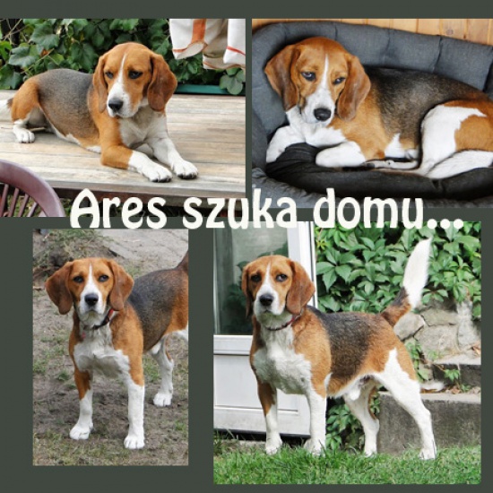 Ares ma cztery lata. Został znaleziony, jednak mimo ogłoszeń właściciel nie odnalazł się, został więc przeznaczony do adopcji. W chwili obecnej przebywa w hotelu dla zwierząt. Dobrze odnalazł się w hotelowej sforze, nie sprawia problemów, dobrze dogaduje się zarówno z suniami, jak i psami. Jest wesołym, przyjaznym i sympatycznym psem, który kocha ruch i zabawę. Fantastycznie pracuje na smaczki, bardzo mu się podoba zabawa w szukanie smakołyków. Może wtedy pracować nosem, co wręcz uwielbia. Na spacerach węszy z zapamiętaniem, szukając wszelkich ciekawych tropów. Nos Aresa prowadzi go czasem na manowce, więc spacery muszą odbywać się na długiej smyczy, lub lince, co da mu poczucie swobody, a jednocześnie pozwoli właścicielowi zachować kontrolę nad psem.