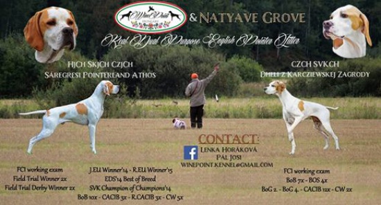 3.1.2016 were born 9 puppies to our female Dheli z Krczewskiej Zagrody, their father is Sáregresi Pointerland Athos. This amazing mating predisposes puppies for shows and hunting, but mainly as wonderful family companions. Contact: (skorzystaj z formularza) or www.natyavegrove.com