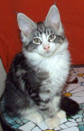 Hodowla Kotów Rasowych poszukuje nowego domu dla 4 mies. kocurka w kolorze czarny pręgowany ze srebrem i białym. Kotek jest dobrze wychowany, łagodny, zdrowy.