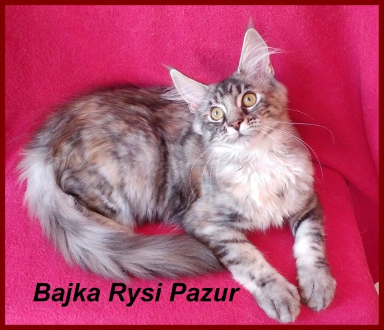 Hodowla Rysi Pazur ma do zaoferowania dwa kocurki i jedną koteczkę.Kocięta mają 4 miesiące i ważą po 3,5 kg.Baron jestczarnym klasycznie pręgowanym kocurkiem. Benji to niebieski klasycznie pręgowany kocurek. Bajka jest niebieską szylkretką. Kocięta mają cudowne miziaste charaktery.Posiadają ksiązeczkę zdrowia i 5-cio pokoleniowy rodowód. Są nauczone czystości,2xodrobaczone,2x zaszczepione ,zaczipowane i po kastracji. Do nowego domku kazdy dostanie wyprawkę. Jesteśmy zarejestrowani w CCAMBER pod patronatem FPL.