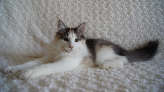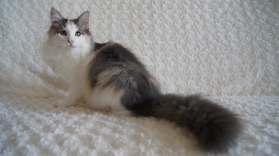 Rodowodowa koteczka norweska leśna w wieku czterech miesięcy, szuka nowego domu. Jest piękną przedstawicielką swojej rasy. Wychowuje się w domowej atmosferze, w otoczeniu całej rodziny i pozostałych naszych zwierząt. Dzięki swojemu miłemu, bardzo kontaktowemu usposobieniu da wiele radości swojej nowej rodzinie, ale również, dzięki bardzo dobrej budowie, zbliżonej do wzorca rasy, sprawdzi się jako kotka wystawowa