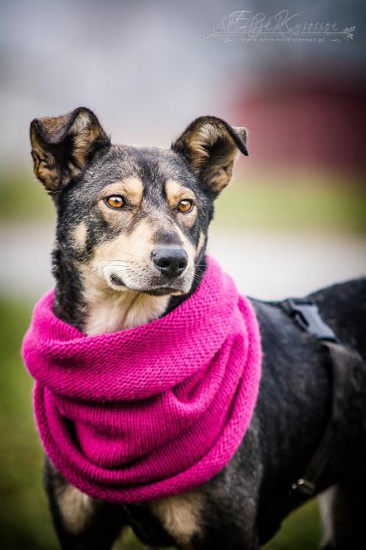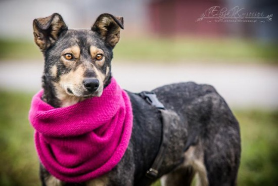 Shila to młoda, ok. 2 letnia średniej wielkości sunia o pięknym wilczastym umaszczeniu. Shila w tej chwili wazy 21 kg, docelowo osiągnie pewnie ok. 25-27 kg, bo teraz to szkielet obciągnięty skórą. Shila to fantastyczny i przyjaźnie nastawiony do świata pies. Niezwykle wdzięczna za każdy gest czy spojrzenie w jej stronę. Bardzo cierpliwa i spolegliwa. Jest damą w każdym calu, karmienie z rąsi to to, co królowa lubi najbardziej, bo przecież jeśli ze schodów znoszą na rękach, to czemu jedzenie ma być z miski ? Najbardziej na świecie kocha człowieka. Bezkrytycznie w niego wpatrzona. Ogon cały czas w ruchu, nieważne czy znajomy, czy pierwszy raz widziany przechodzień - pies kocha wszystkich i wszystko wokół. Gdyby tylko się dało to najchętniej preferowałaby mizianko 24 h na dobę. Jest wielką pieszczochą i miziakiem. Przy tym bardzo zrównoważona i mądra. Wygląda na to, że Shila była kiedyś psem domowym, niestraszne jej domowe dźwięki odkurzacza czy miksera, bez problemu porusza się po płytkach czy panelach. Zostaje sama w domu. Nie niszczy, nie wyje. Utrzymuje czystość w domu. W pierwszych kontaktach pozytywna do mniejszych psów, jednak z uwagi na łapę nie dopuszczamy narazie do bliższych konfrontacji z większą rezydentką.