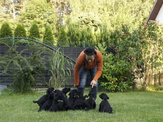 Szczenięta od urodzenia przebywają w domu i mają stały kontakt z ludźmi, są przygotowywane do życia w kochającej je rodzinie.