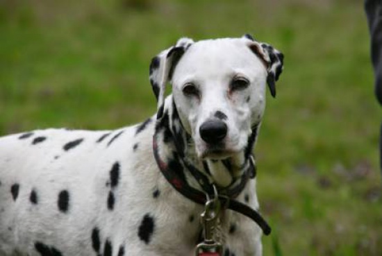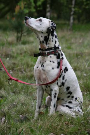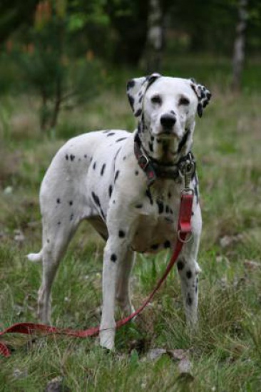 Kropka to około 5 letnia, dość duża suczka w typie dalmatyńczyka, ale drobnej budowy - waży 22 kg i ma 53 cm w kłębie. Jest bardzo spokojna i zrównoważona. Przyjaźnie nastawiona do wszystkich ludzi, bez problemu daje się każdemu głaskać, czasem sama prosi o pieszczoty. Ładnie chodzi na smyczy, jednak zdarzają się jej momenty, w których potrafi mocno ciągnąć do przodu, w szczególności jak ktoś idzie przed nią.