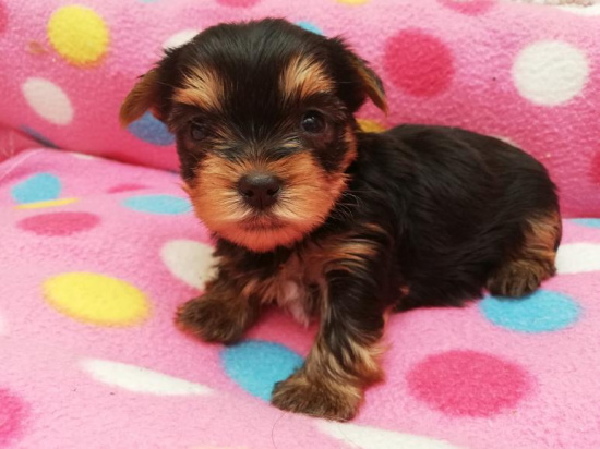 Yorkshire Terrier, szczenięta z rodowodem FCI. Szczenięta będą małego wzrost. Rodzice ważą 2,4 kg i 2,3 kg. Zaszczepione i odrobaczone, czipowane, paszport i świadectwo szczepienia. Nauczony na posłanie i wychowane wrodzinie ze stałą opieką. Nadaje się do wystaw, hodowli, ale także jako rodzine zwierzę. Mamy 3 pieski i jedną małą sukę. Po uzgodnieniu mogę przywieźć. Mówimy po angielsku. Więcej zdjęć na życzenie.