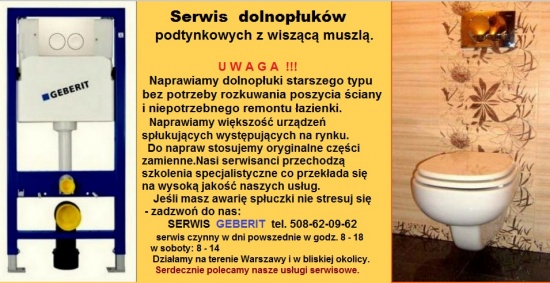SERWIS GEBERIT,tel.508-62-09-62 czynny w dni powszednie w godz.8-17,w soboty w godz.8-14.