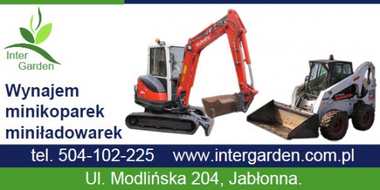 Firma InterGarden Zajmuje się usługami oraz wynajmem maszyn budowlanych: minikoparek, miniładowarek na terenie Warszawy, Legionowa, Pruszkowa, Piastowa, Ożarowa, Wieliszewa, Radzymina, Serocka, Wołomina, Łomianek i okolic.