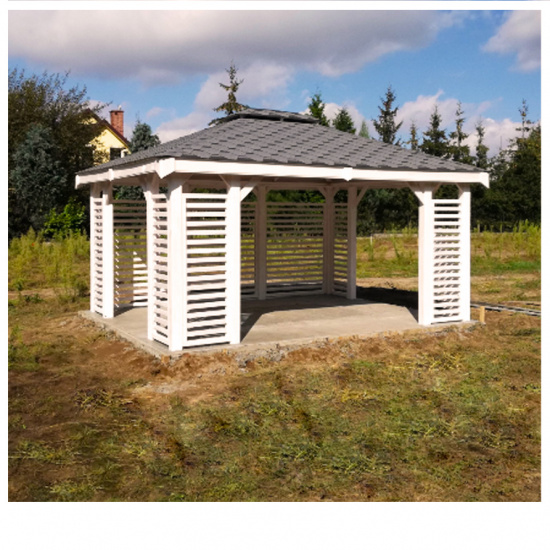 Nasze budowle wykywane są z drewna sosnowego, zabezpieczanego dwukrotnie impregnatem (kolor do wyboru) oraz pokryte gontem bitumicznycznym z długoletnią gwarancją producenta.