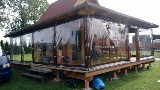 Oferujemy Państwu osłony na altany oraz zabudowy tarasów, restauracji i obiektów, które chcemy chronić przed wiatrem lub słońcem. Osłona taka pozwala wygodnie korzystać z umiejscowionych na zewnątrz tarasów, dając nam komfort przy złej pogodzie oraz wizualne upiększenie wszelkiego rodzaju zabudowy naszych domków, altan lub lokali gastronomicznych. Tarasy takie wykonujemy z mocnych plandek PVC-680gr/m2 oraz folii przezroczystych o grubości 5mm. Podana cena, to cena za m2 zużytego materiału. Wszelkie kolory oraz wymiary realizujemy na Państwa życzenie. Dokonujemy również pomiarów i montażu oraz realizujemy zamówienia na wysyłkę.