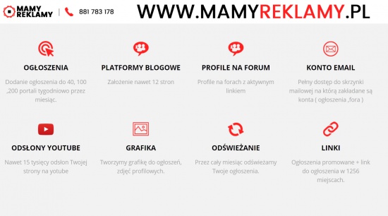 - ogłoszenia promowane + link do ogłoszenia w 1256 miejscach.