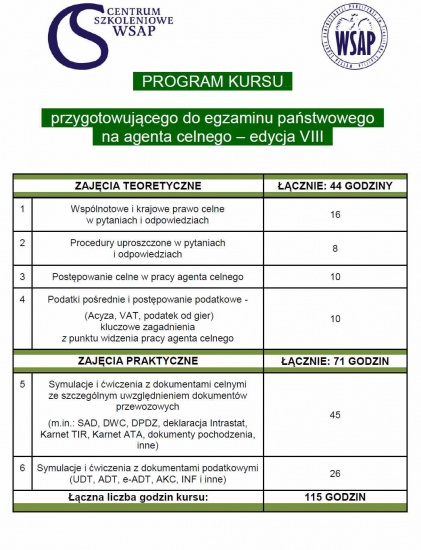 1) 115 godzin kursu w tym 71 GODZIN ZAJĘĆ PRAKTYCZNYCH w salach komputerowych (wypełnianie dokumentów podatkowych i celnych)!