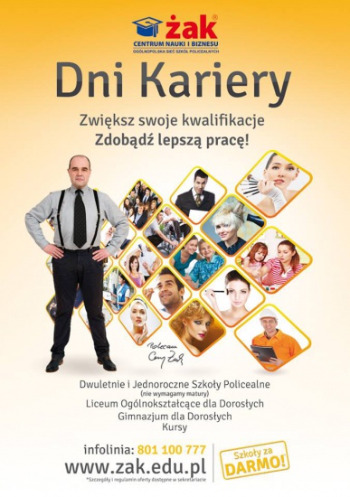 Recepta na sukces? Dużo zapału, pozytywnej energii, pomysł na siebie i… wykształcenie! Podpowiemy Ci, co zrobić, by rozwinąć swoją karierę zawodową oraz zdobyć rzetelną wiedzę i zawód całkowicie za darmo! Zapisz się do nas w ciągu minuty online: www.zak.edu.pl/formularz - czekamy!