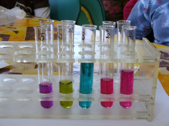 Dysponujemy własnym szkłem (głównie plastikowym), urządzeniami i bezpiecznymi odczynnikami chemicznymi niezbędnymi do przeprowadzania doświadczeń.