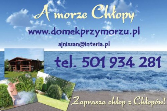 Zapraszam Państwa na cudowny wypoczynek w Chłopach na szesnastym południku! Oferuję Państwu 2 drewniane domki - 4 osobowy i 6 osobowy: z łazienką, kuchnią oraz sprzętem radiowym i telewizyjnym. Do dyspozycji mamy również 4 osobową przyczepę kempingową z lodówką i kuchenką gazową. Posiadamy dwie ogrodzone działki o powierzchni 500mkw, a na nich dodatkowo plac zabaw z huśtawkami, piaskownicami dla małych turystów oraz wędzarnią dla smakoszy ryb. Wspaniała lokalizacja - domki znajdują się 400 metrów od plaży, w okolicy jest kilka sklepów spożywczych, smażalni, restauracji oraz przystań rybacka, gdzie można kupić świeże ryby. Istnieje możliwość wykupienia całodziennego wyżywienia w pobliżu. Turnusy w sezonie trwają od soboty do soboty. Po sezonie termin do uzgodnienia - i 50% taniej! Kontakt: tel. 501 934 281 lub 507 520 200 , e-mail: (skorzystaj z formularza) www.chlopzchlopow.pl